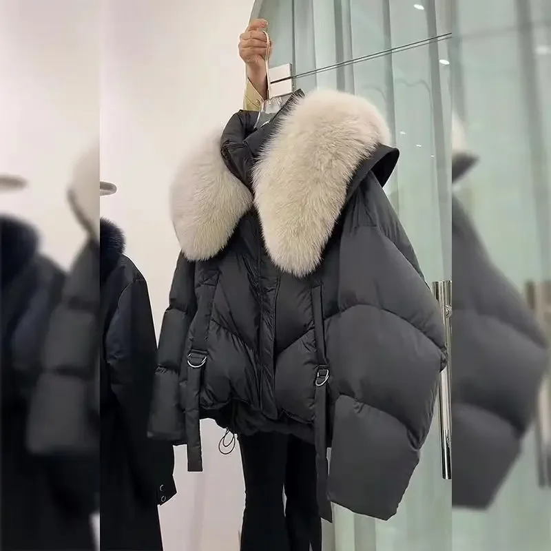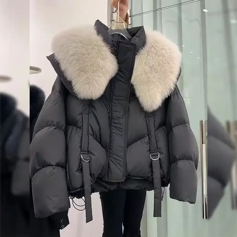 2024 Korean Fashion Fur Collar Winter Women White Jacket Ladies Vintage Short Warm Puffer Coat Female Parka Outerwear