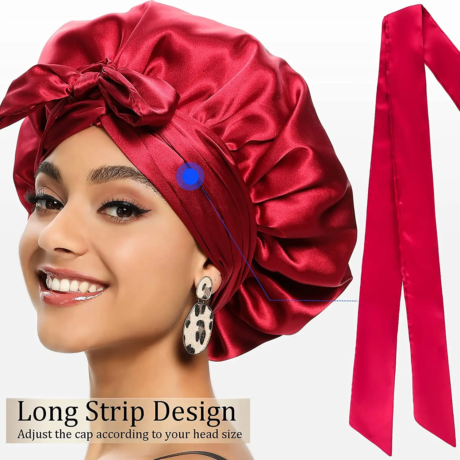 new Large Satin Bonnet Silk Night Sleeping Cap long satin bonnet with head tie Band bonet edge wrap for Women Curly Braid Hair