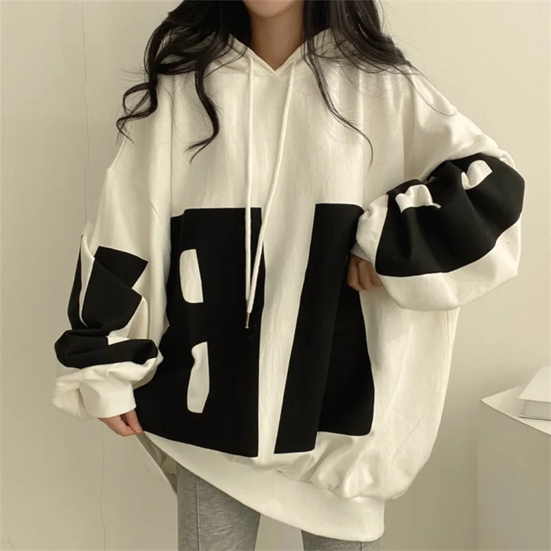 Spring Autumn Women Hoodies Fashion Letter Printed Female Oversized Sweatshirts Long Sleeve Ladies Casual Hooded Pullover Tops